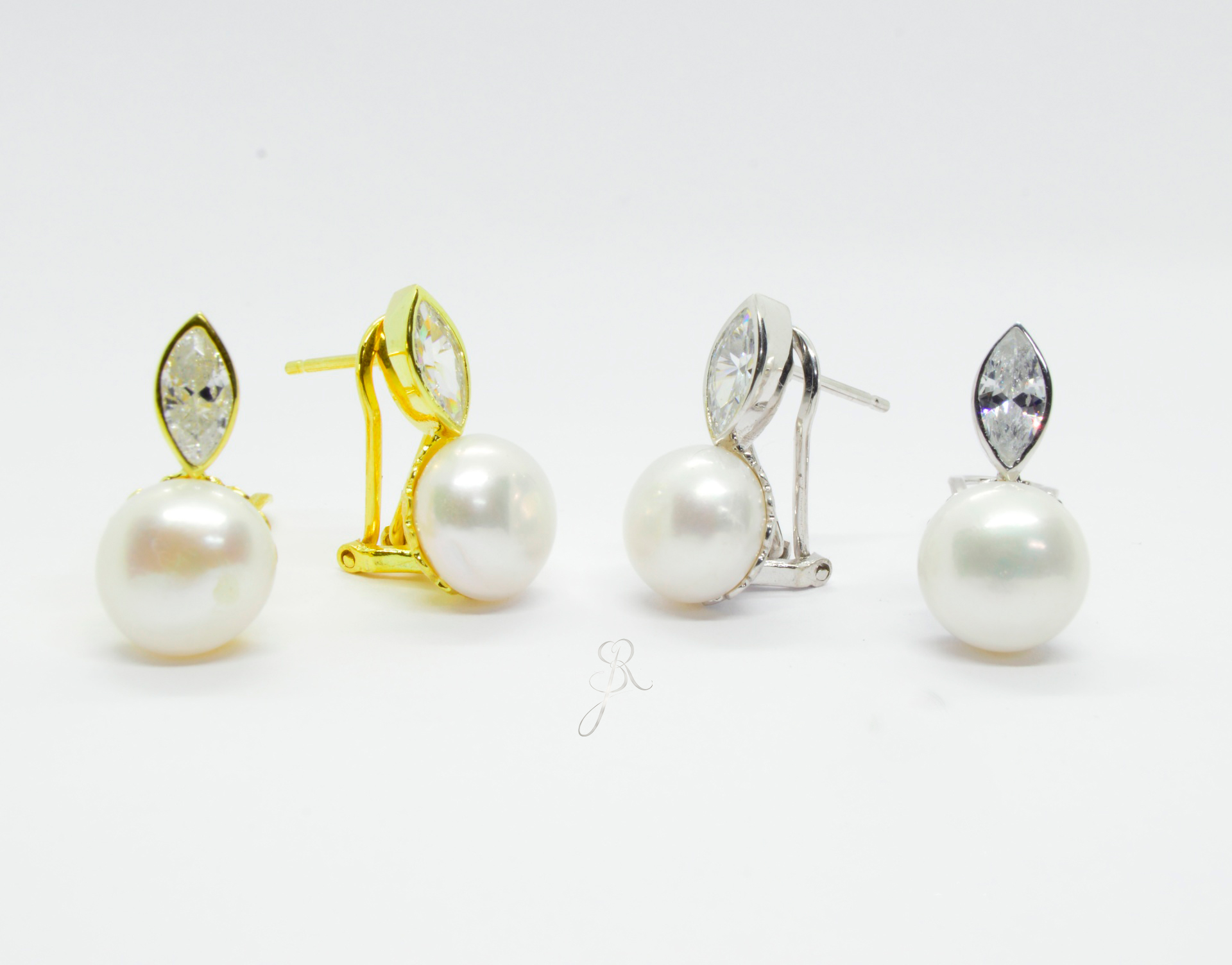 Pedras: Pérola Água Doce 9.5mm e Zircónia 8x4mm